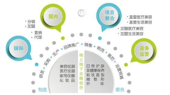 Mooning集团业务范围覆盖医疗美容仪器、生活美容仪器、家用美容仪器、专业护肤品、医美门诊、皮肤美容门诊及科技美容会所等美容领域。