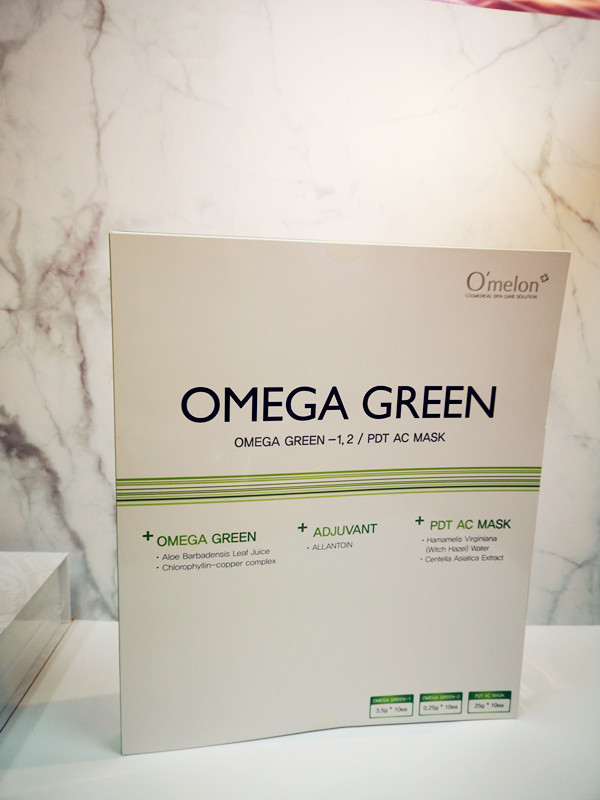 叶绿素焕肤是专业美容师用护理产品,用OMEGA GREEN护理时,皮脂量和皮肤问题减少,保持皮肤清新。应用Mild type的光敏剂,有大自然获取的天然成分叶绿素萃取物和从海藻种获取的小球藻组成,安全,无副作用。同现有的光敏剂治疗方法不同,不会产生变红或晒黑现象,使用后不影响日常生活。也不会对紫外线敏感,没有色素沉淀的危险性。