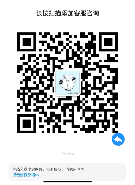 当前位置: 首页未分类正文 长按扫描添加客服咨询教程~!!! 声明:本站所有文章,如无特殊说明或标注,均为本站原创发布。任何个人或组织,在未征得本站同意时,禁止复制、盗用、采集、发布本站内容到任何网站、书籍等各类媒体平台。如若本站内容侵犯了原著者的合法权益,可联系我们进行处理。客服微信教程