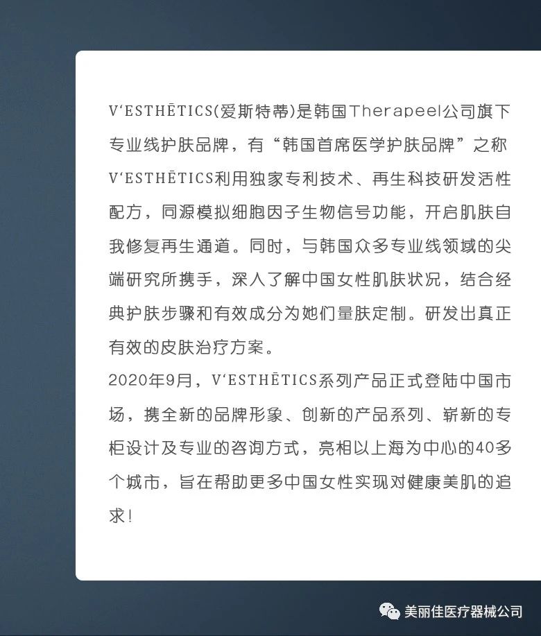 当前位置: 首页代理产品V’ESTHETICS 爱思特蒂V’ESTHETICS MASK 爱思特蒂医用冷敷贴正文 声明:本站所有文章,如无特殊说明或标注,均为本站原创发布。任何个人或组织,在未征得本站同意时,禁止复制、盗用、采集、发布本站内容到任何网站、书籍等各类媒体平台。如若本站内容侵犯了原著者的合法权益,可联系我们进行处理。