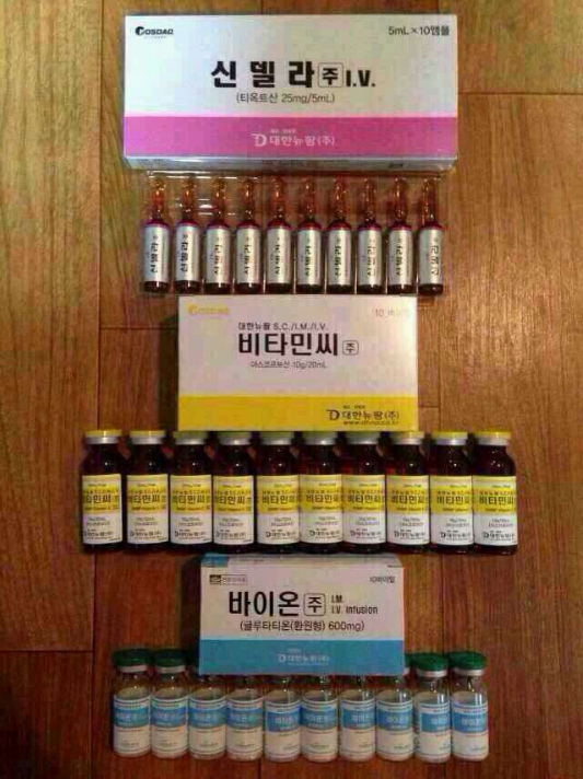 الطريقة الأولى: إبر اليشم الأبيض الكوري ، علبة مكونة من 10 إبر ، 10 إبر عبارة عن دورة علاجية ، زجاجة واحدة من اليشم الأبيض مع محلول ملحي فسيولوجي 100 مل أو 250 مل.