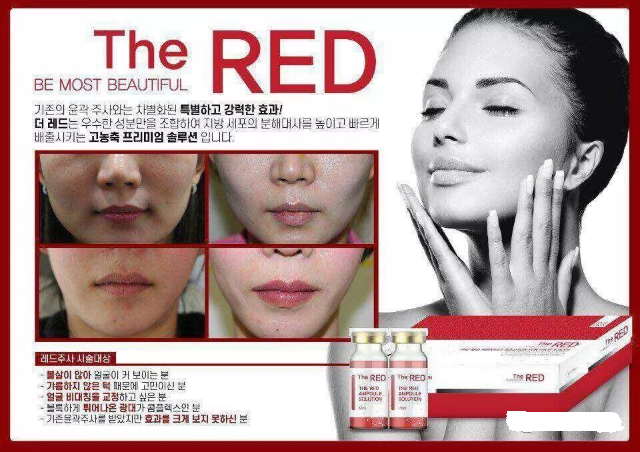 THE RED Koreas neue Generation fettlösender Essenzen für den Fetttyp unterscheidet sich von herkömmlichen fettlösenden Nadeln. Es hat eine hohe Sicherheit, schnelle Wirkung und wenige Nebenwirkungen. Es wurde von der koreanischen KFDA zugelassen. Es gibt keine Nebenwirkungen nach der Anwendung und die Wirkung ist in den schnellsten 24 Stunden sichtbar! Das weltweit erste hochkonzentrierte VB und andere wirksame Inhaltsstoffe, die Fett schnell abbauen, den Fettabbau fördern und schnell ausscheiden und gleichzeitig die perfekte Form anheben und straffen, die bei Gesichtsfettleibigkeit, Doppelkinn, übermäßigem Körperfett usw. verwendet werden können. Form.